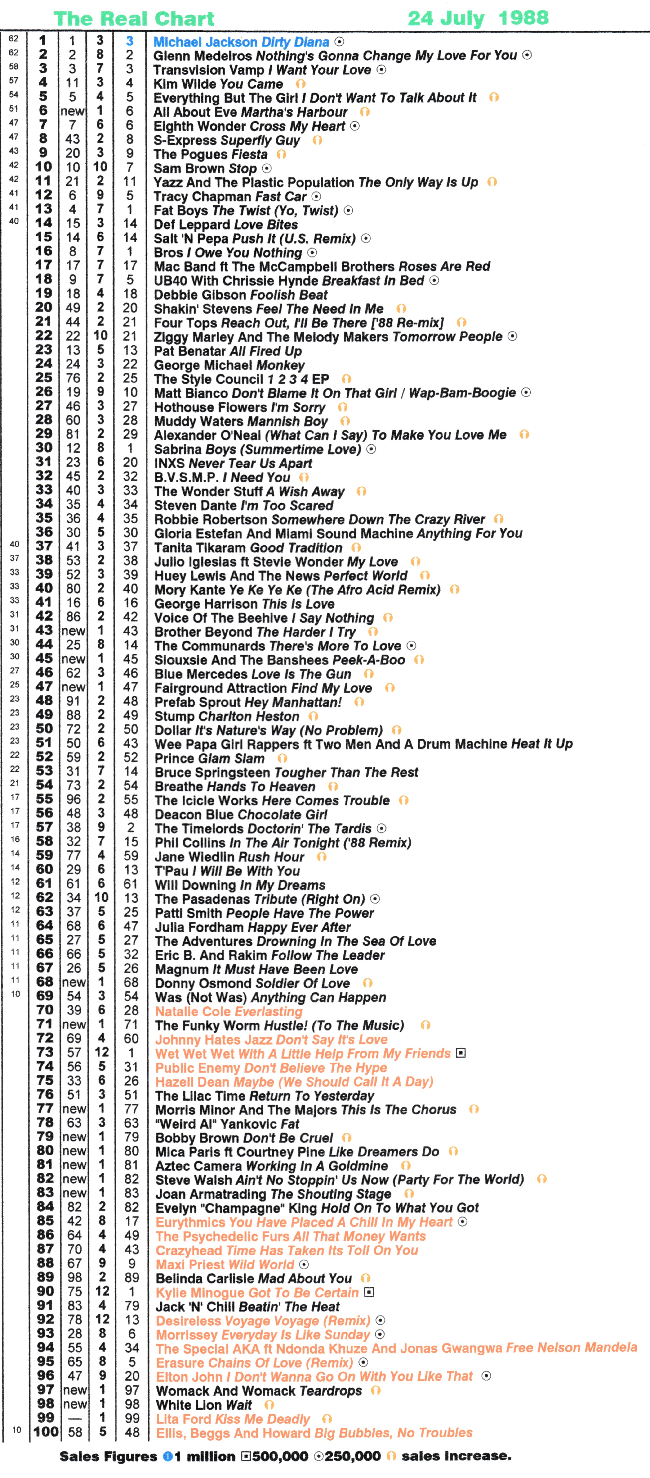 This page will feature any completed Real Charts from the nineteen eighties. The 1987 are now complete with the full PDF too. The 1988 charts are now being uploaded one at a time each week. Scroll down to the bottom of the page to see the latest charts.